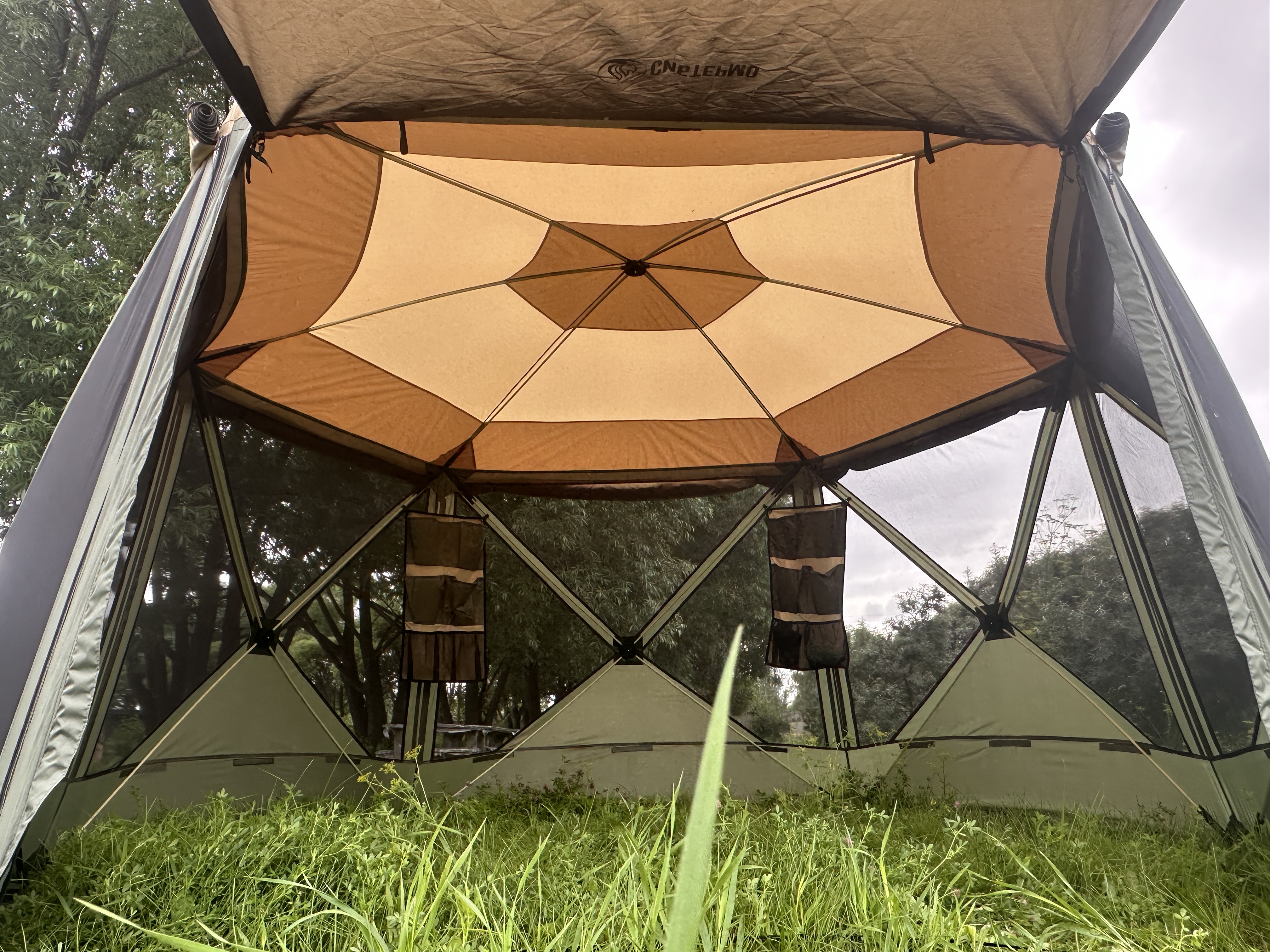Классическое положение дуг шатра позволяет размещать органайзеры на любой из сторон шатра.