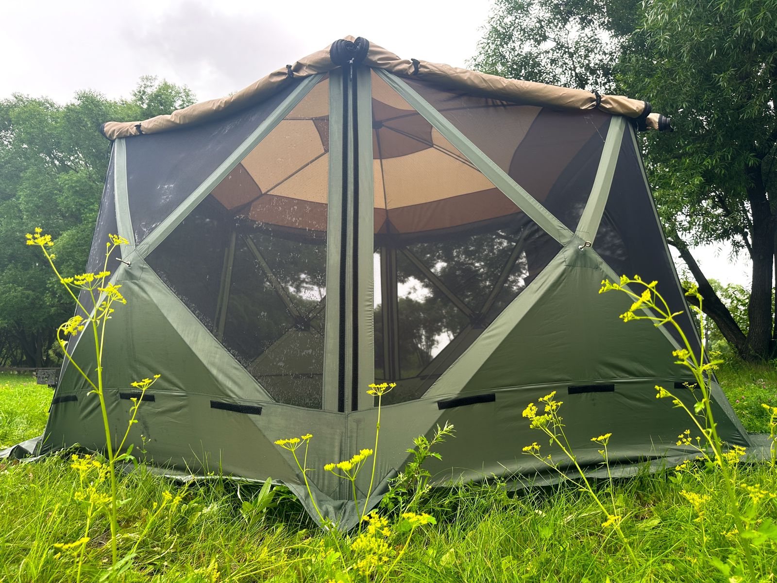 Стенки шатра могут быть закрыты полностью или открыты с москитной сеткой. Открываются по-отдельности. Молния на шторках смещена в сторону.